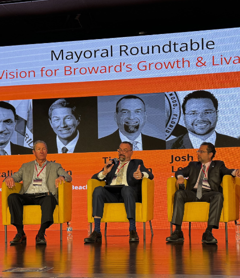 The panel featured Fort Lauderdale Mayor Dean Trantalis, Hollywood Mayor Josh Levy, and Pompano Beach Mayor Rex Hardin. Broward County Commissioner Michael Udine moderated the discussion, which covered housing, infrastructure, transportation, economic opportunity, and regional collaboration.